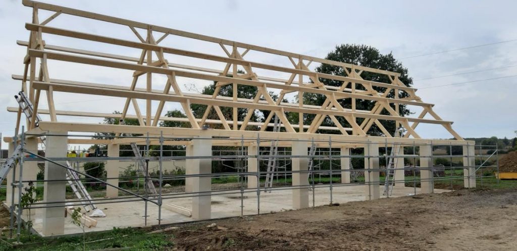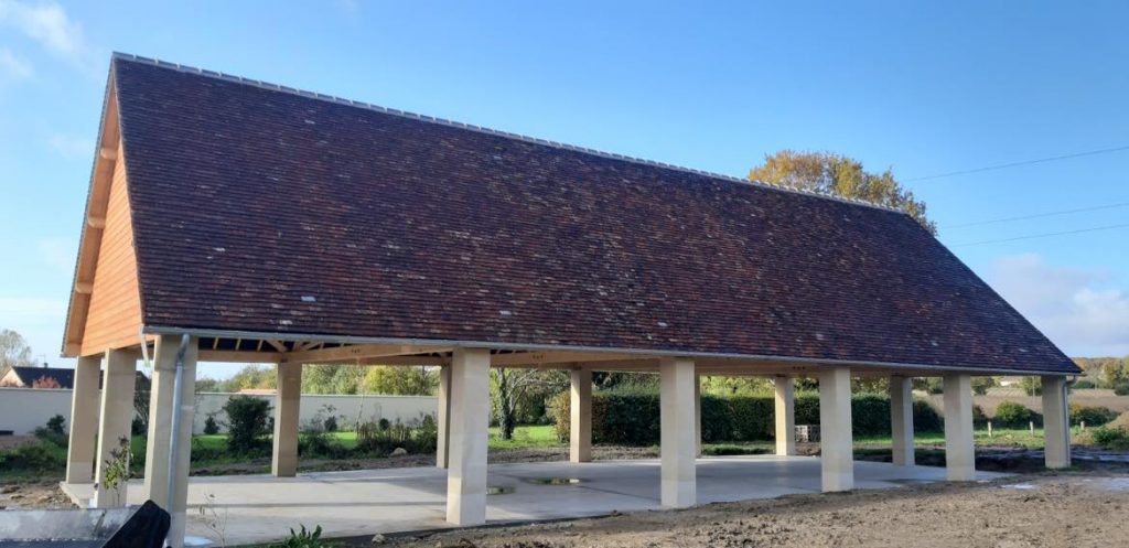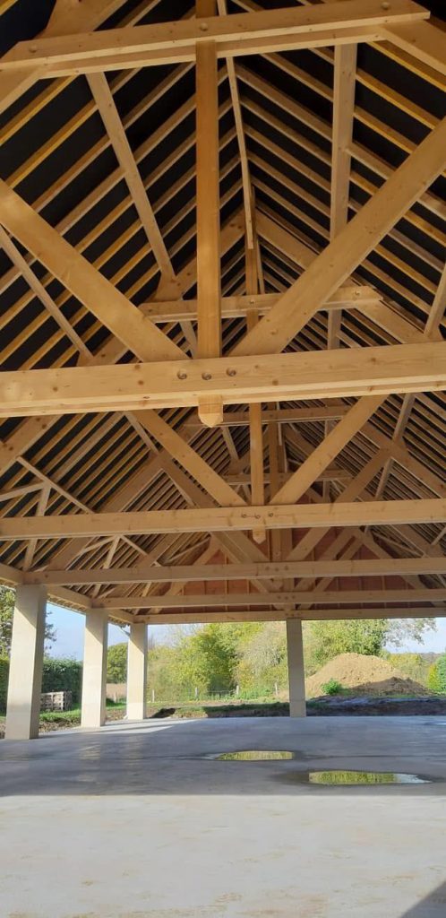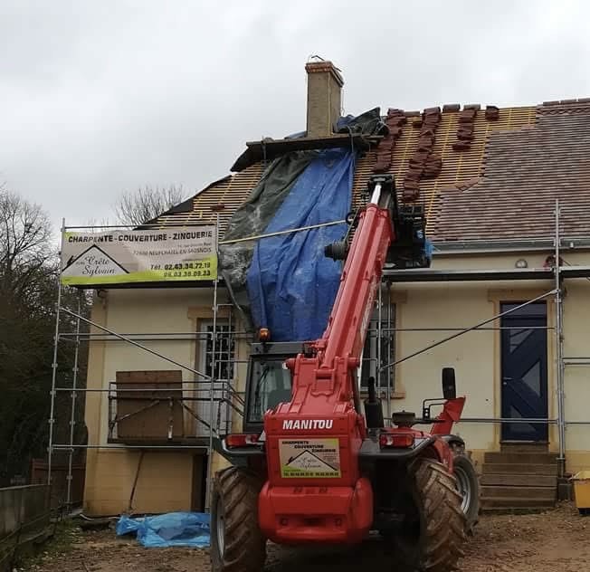 Rénovation complète charpente et couverture partie haute en tuiles neuves Sainte Foy Ailliance, et partie basse en tuiles mécaniques à cause de la faible pente du toit. Avec créations d’ouvertures de toit pour poser des Velux. Pose de gouttières, crochets, et tuyau de descente en zinc, avec soudure. Analyse de pente, notre savoir-faire pour travailler la zinguerie.